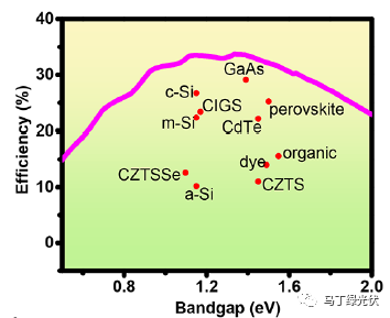 4.像鈣鈦礦、碲化鎘、銅銦鎵硒這類的材料,能帶寬度大于晶體硅電池,能夠用于制備晶體硅疊層電池,拓寬光譜的利用率,進一步提高太陽能電池的理論效率。