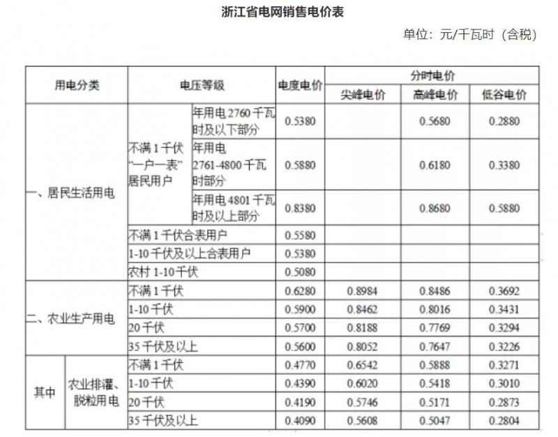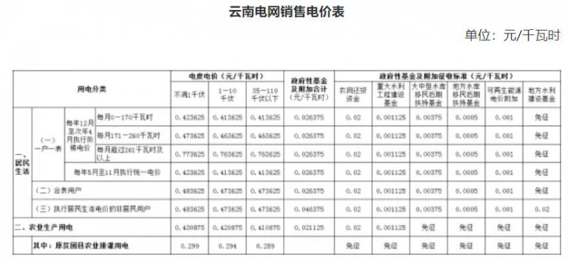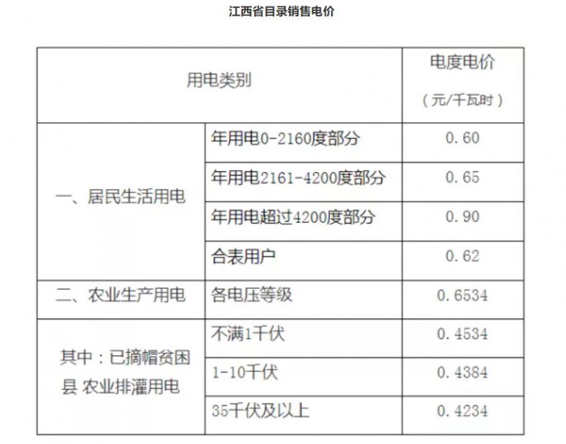 備注:1.居民生活用電,含國(guó)家重大水利工程建設(shè)基金0.196875分錢、大中型水庫(kù)移民后期扶持資金0.62分錢、可再生能源電價(jià)附加0.1分錢。2.農(nóng)業(yè)生產(chǎn)用電,含國(guó)家重大水利工程建設(shè)基金0.196875分錢。3.居民生活用電合表分類包括:居民合表及執(zhí)行居民電價(jià)的非居民用戶。