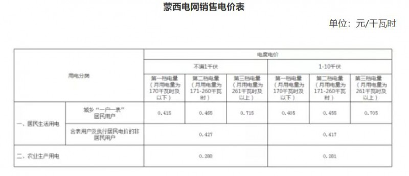 備注:1、農(nóng)村低壓各類用電按上表合計(jì)欄電價(jià)執(zhí)行,其中含維管費(fèi)。2、一戶一表居民生活用電二檔、三檔電價(jià),在一檔電價(jià)基礎(chǔ)上每千瓦時(shí)分別提高0.05元和0.3元。