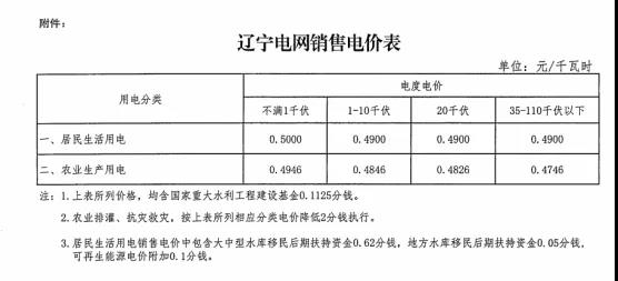 注:上表所列價(jià)格,除農(nóng)業(yè)生產(chǎn)用電外,居民生活用電含國(guó)家重大水利工程建設(shè)基金0.1125分錢、大中型水庫(kù)移民后期扶持基金0.62分錢和可再生能源電價(jià)附加0.1分錢。
