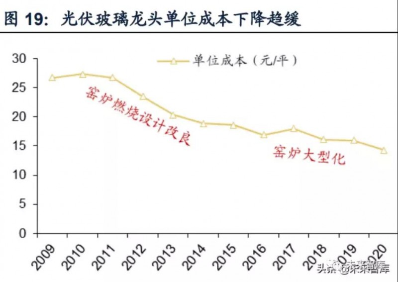 光伏玻璃受益雙玻滲透提升,背部應(yīng)用打開增量空間。根據(jù)CPIA協(xié)會(huì)對(duì)賽伍技術(shù)董事長(zhǎng)的專訪內(nèi)容,透明背板因?yàn)槟軌驅(qū)崿F(xiàn)組件的輕量化,預(yù)計(jì)將占到雙面組件20%市場(chǎng)份額,同時(shí)根據(jù)CPIA預(yù)測(cè),2025年雙面組件市場(chǎng)份額有望達(dá)到60%,由此我們預(yù)計(jì)2025年雙面單玻(透明背板)組件占比為12%,不考慮雙面均為透明背板的組件,則雙面雙玻組件滲透率為48%,單面單玻組件占比為40%,對(duì)應(yīng)光伏玻璃需求將在2025年接近28億平,2020-2025年CAGR達(dá)22%。