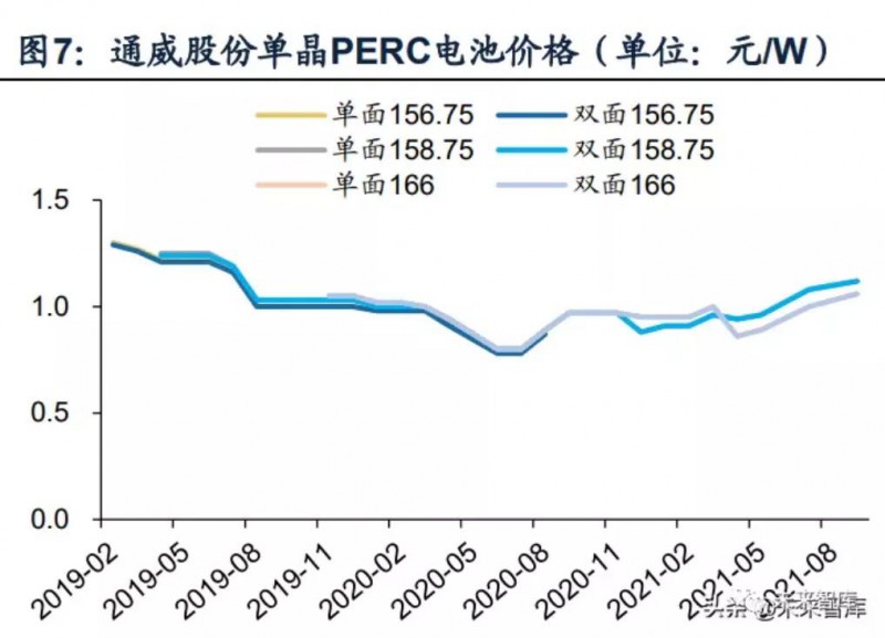 單雙面電池/組件幾乎同價(jià),雙面增益滲透率不斷提升。根據(jù)Wind,通威股份PERC單雙面電池片報(bào)價(jià)已趨于一致。根據(jù)Solarzoom,一線廠商單雙面組件成交價(jià)差也在0.02元/W以內(nèi)。由于雙面組件背面發(fā)電增益帶來(lái)的性價(jià)比提升,滲透率正在快速提升,根據(jù)CPIA統(tǒng)計(jì),雙面組件市場(chǎng)份額已從2018年的2%提升至2020年的30%,預(yù)計(jì)2025年有望達(dá)到60%以上。