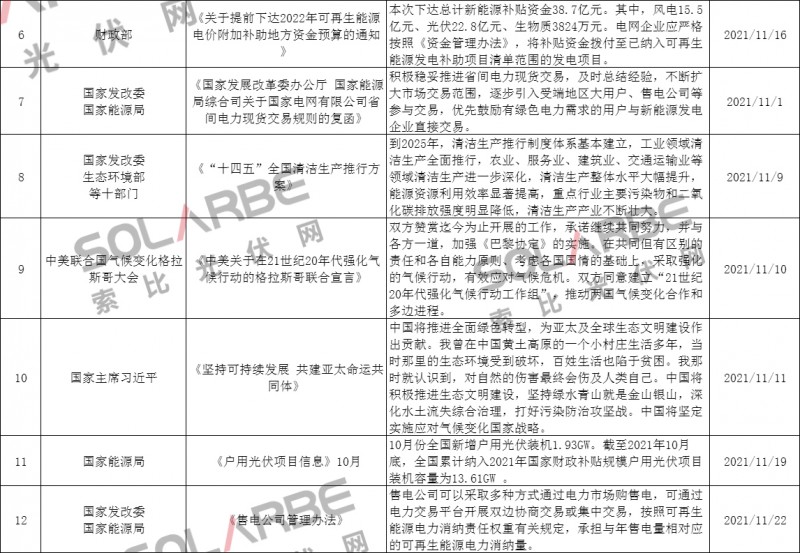 那么,11月份的光伏行業(yè)有哪些政策值得重點(diǎn)關(guān)注呢?下面來看索比光伏網(wǎng)的梳理。