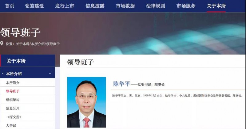 同時,深交所官網(wǎng)上的領(lǐng)導班子介紹信息已更新。官網(wǎng)顯示,陳華平,男,漢族,1968年12月出生,法學學士,中共黨員?,F(xiàn)任深圳證券交易所黨委書記、理事長。
