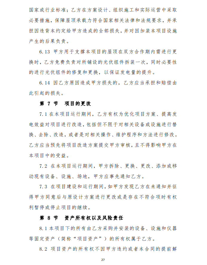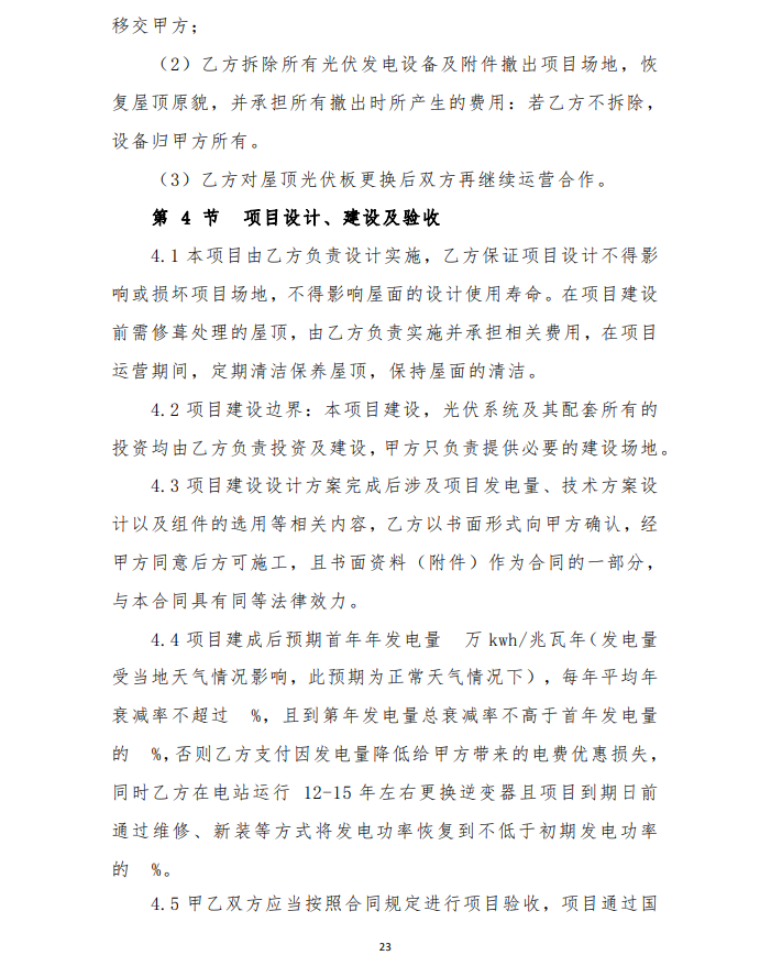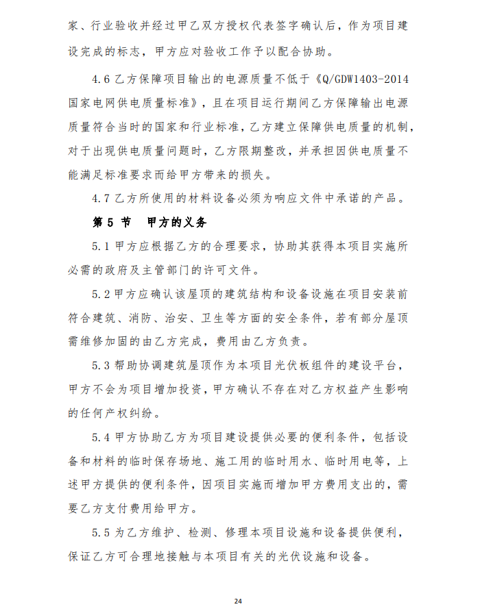 4、由于光伏發(fā)電項(xiàng)目運(yùn)行生命周期長(zhǎng),安裝用戶(hù)點(diǎn)多,面大,為保障安裝戶(hù)的權(quán)益,維護(hù)社會(huì)穩(wěn)定,建設(shè)企業(yè)要提供明確的長(zhǎng)期運(yùn)維方案及保障費(fèi)用,具體以運(yùn)維合同為準(zhǔn)。