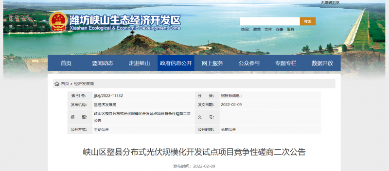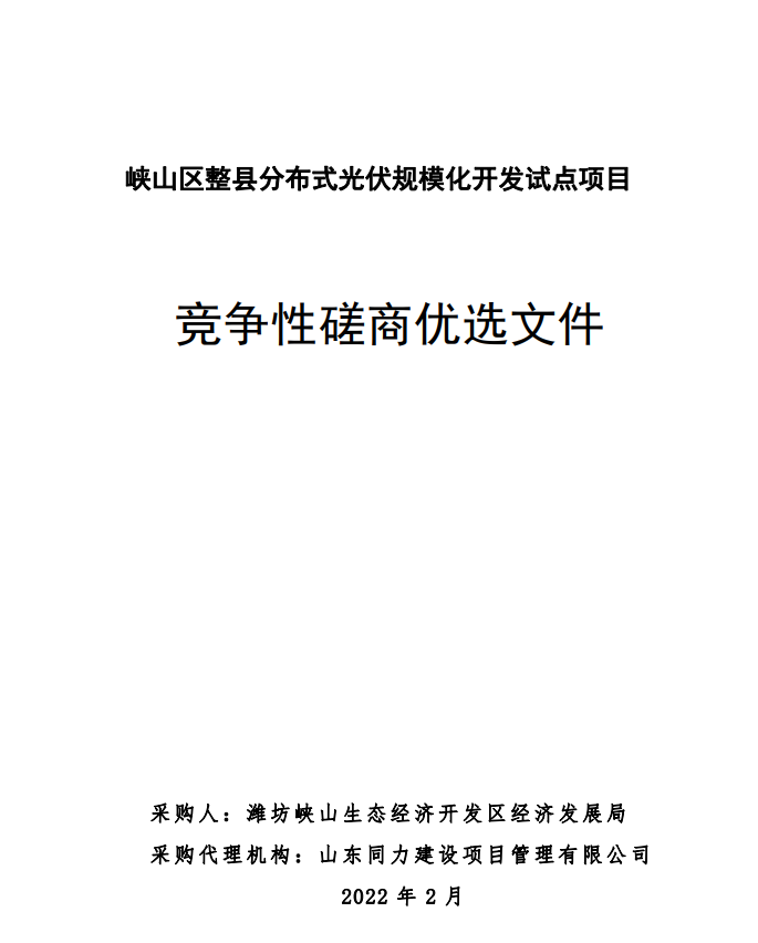峽山區(qū)整縣分布式光伏規(guī)?;_(kāi)發(fā)試點(diǎn)項(xiàng)目競(jìng)爭(zhēng)性磋商二次公告
