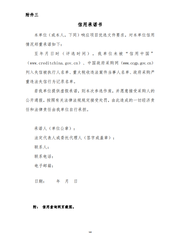 6、參與磋商的企業(yè)未被列入“信用中國(guó)”網(wǎng)站(www.creditchina.gov.cn)記錄失信被執(zhí)行人或“重大稅收違法案件當(dāng)事人名單或企業(yè)經(jīng)營(yíng)異常名錄”記錄名單;不處于中國(guó)政府采購(gòu)網(wǎng)(www.ccgp.gov.cn)政府采購(gòu)嚴(yán)重違法失信行為信息記錄”中的禁止參加政府采購(gòu)活動(dòng)期間;(詳見(jiàn)附件,以上資料查詢(xún)時(shí)間以本項(xiàng)目磋商優(yōu)選文件發(fā)布至截止時(shí)間前為準(zhǔn),如相關(guān)失信記錄已失效,參與企業(yè)需提供相關(guān)證明資料)。