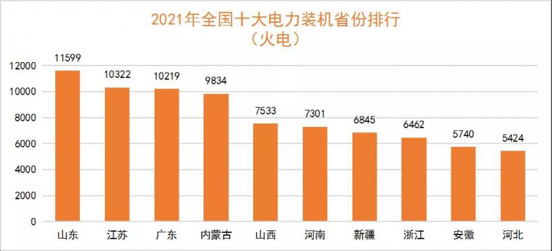全國(guó)火電裝機(jī)容量分布圖如下所示。