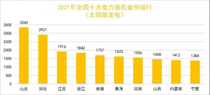 全國(guó)太陽(yáng)能發(fā)電裝機(jī)容量分布圖如下所示。