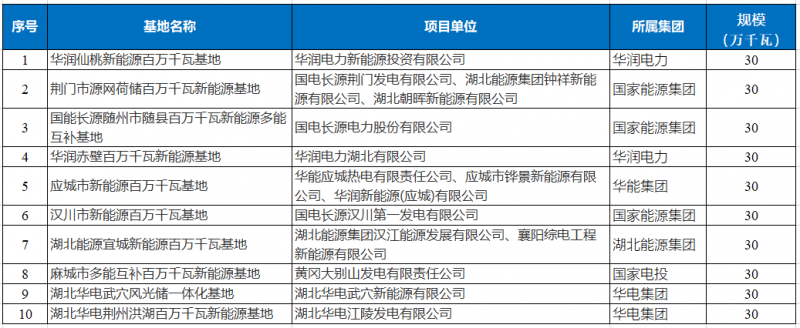百萬千瓦基地指標(biāo)的具體項目分配如下表所示。
