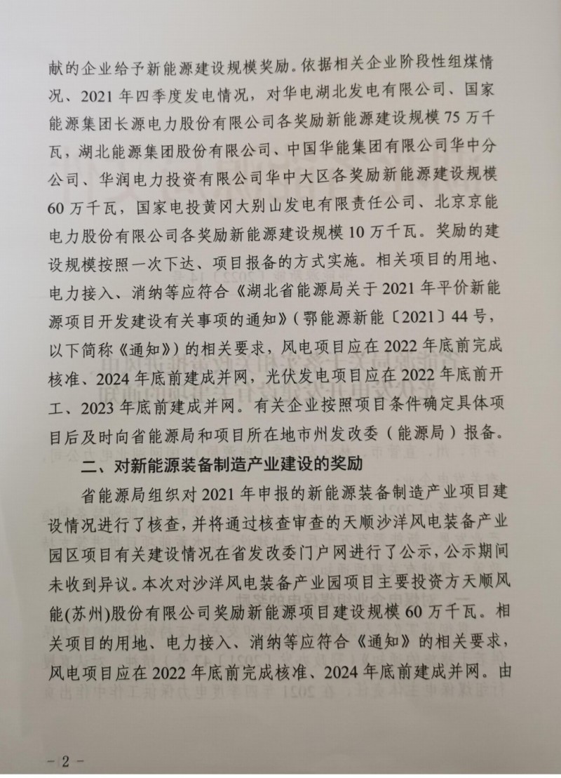2)對新能源裝備制造產(chǎn)業(yè)建設(shè)的獎勵,60萬千瓦;