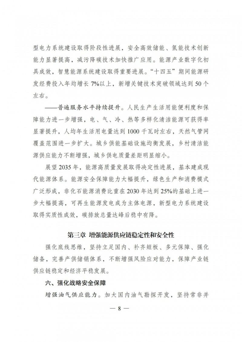 《“十四五”現(xiàn)代能源體系規(guī)劃》已經(jīng)國(guó)務(wù)院批復(fù)同意,現(xiàn)印發(fā)給你們,請(qǐng)認(rèn)真貫徹實(shí)施。
