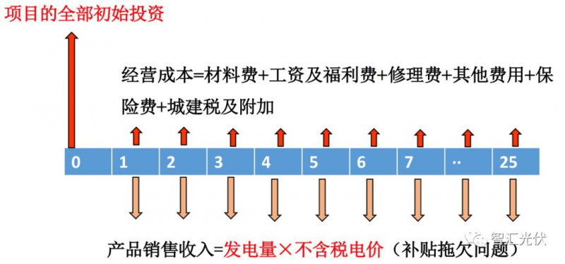 1.“1kW年收益”與收益率線性相關(guān)項(xiàng)目全部投資內(nèi)部收益率,即凈現(xiàn)金流為零時的折現(xiàn)值。項(xiàng)目的凈現(xiàn)金流表示如下圖所示。