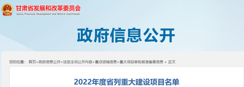 (原標題:7.72GW風光項目,列入甘肅發(fā)布2022年重大建設項目名單)