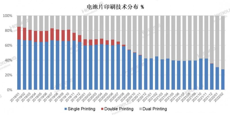 和一月份數(shù)據(jù)相比,單次印刷的比例再次下降3個百分點 ,達(dá)到了28%。N型印刷方式的選擇也更傾向于分布印刷。