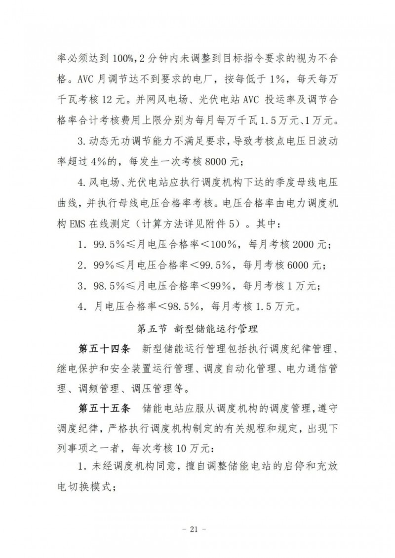 風(fēng)電場、光伏電站執(zhí)行并網(wǎng)主體運(yùn)行管理考核及風(fēng)電場、光伏電站運(yùn)行考核,其考核費(fèi)用返還按當(dāng)月所有風(fēng)電場、光伏電站額定容量(含配套儲能)比例分別計(jì)算分配。
