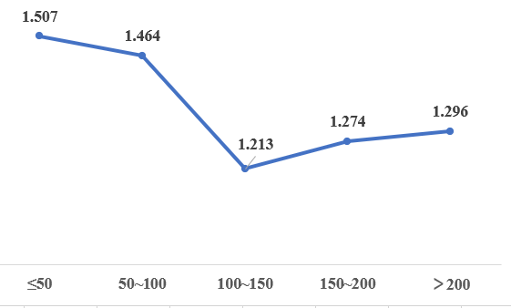 不同單體規(guī)模的項目,平均小EPC價格如下圖所示??梢姡⒎菃误w規(guī)模越大,成本越低,單體規(guī)模在100~150MW的項目,是目前成本最低的。不同規(guī)模的光伏項目小EPC平均價格差異最高可達(dá)0.25元/W。