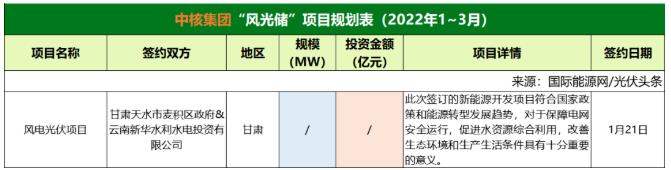 截至2022年3月31日,中核集團共簽約(規(guī)劃)1個風(fēng)光儲項目,該項目只簽署了合作協(xié)議。