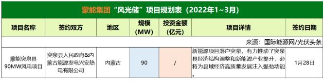 截至2022年3月31日,蒙能集團共簽約(規(guī)劃)1個風(fēng)光儲項目,項目規(guī)模為90MW。