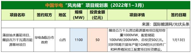 截至2022年3月31日,華能共簽約(規(guī)劃)2個風(fēng)光儲項目,明確規(guī)模共計850MW。