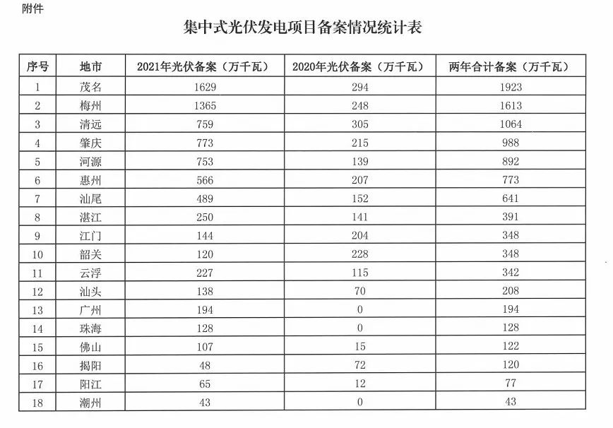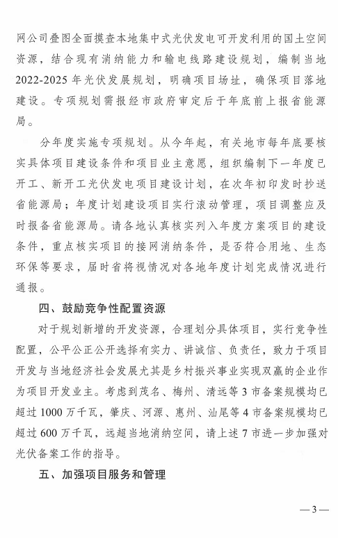 4.鼓勵競爭性配置資源:考慮到茂名、梅州、清遠等3市備案規(guī)模均已超過1000萬千瓦,肇慶、河源、惠州、汕尾等4市備案規(guī)模均已超過600萬千瓦,遠超當?shù)叵{空間,請上述7市進一步加強對光伏備案工作的指導。