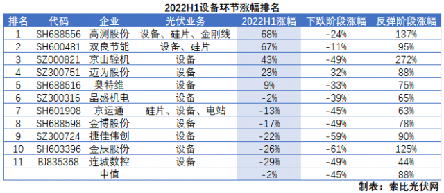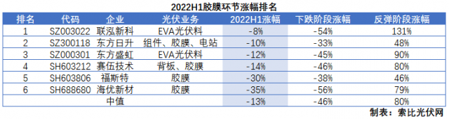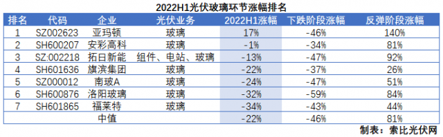 在負(fù)收益的環(huán)節(jié)中,缺少業(yè)績(jī)支撐且技術(shù)層面相對(duì)穩(wěn)定的支架、光伏玻璃、膠膜等環(huán)節(jié)整體跌幅居前,這三個(gè)環(huán)節(jié)中僅有亞瑪頓一家光伏玻璃個(gè)股實(shí)現(xiàn)正收益,其它14只標(biāo)的全部為負(fù)收益。
