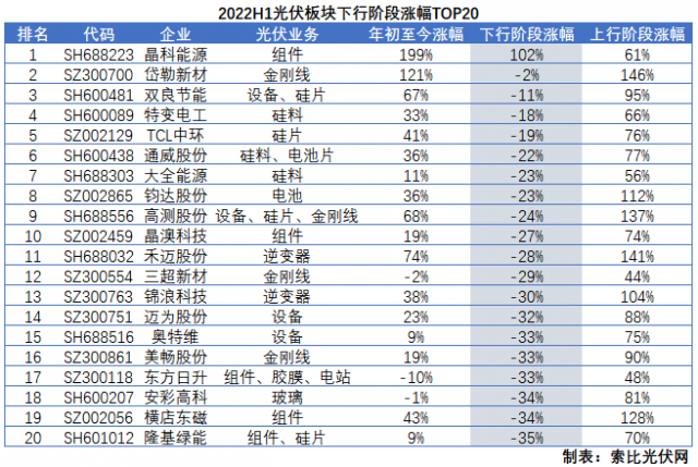 2022年上半年,光伏板塊在宏觀環(huán)境和行業(yè)基本面的共同作用下,經(jīng)歷了一輪大悲大喜的極端行情,在一度暴跌39%的情況下,4月27日A股市場(chǎng)企穩(wěn)后又暴漲60%。在這輪急漲急跌的行情中,既體現(xiàn)了光伏板塊的成長(zhǎng)屬性,又彰顯了行業(yè)基本面的高景氣——畢竟在美聯(lián)儲(chǔ)加息周期內(nèi),成長(zhǎng)性板塊的表現(xiàn)相對(duì)不佳,但光伏板塊在上行行情中卻有眾多個(gè)股再創(chuàng)歷史新高。