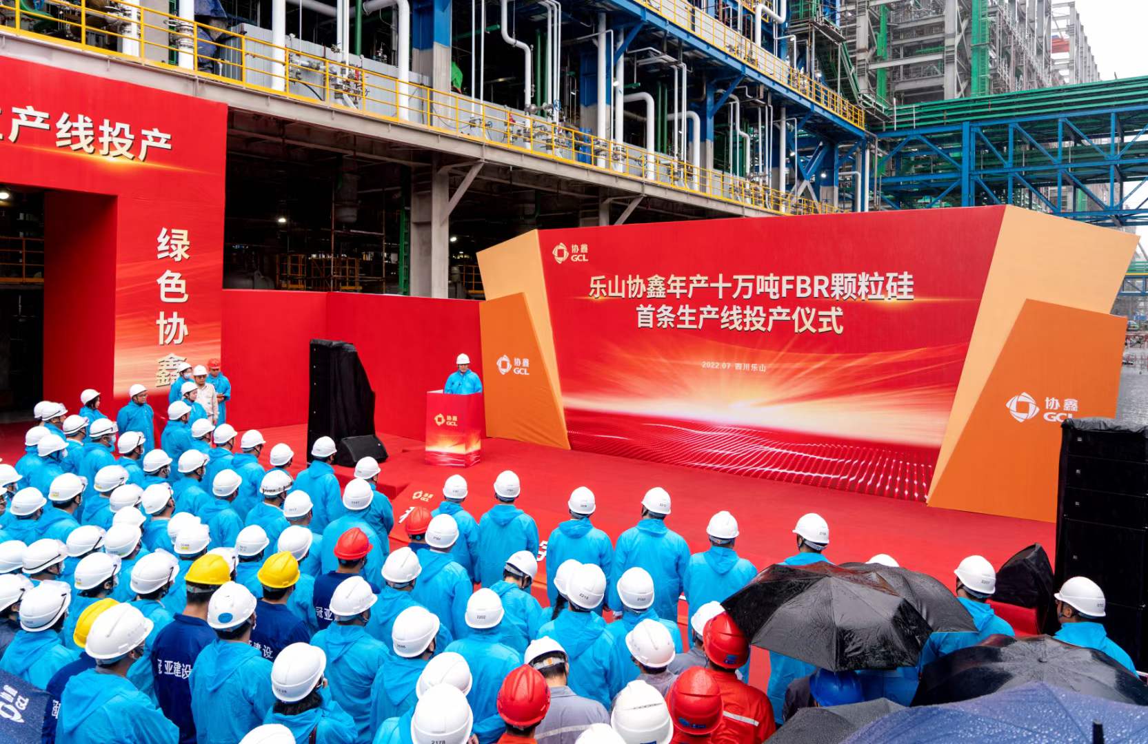 本網(wǎng)訊 7月22日,協(xié)鑫科技在旗下子公司樂山協(xié)鑫新能源科技有限公司(下稱“樂山協(xié)鑫”)顆粒硅出料現(xiàn)場,舉行10萬噸GCL-FBR顆粒硅項(xiàng)目首套裝置生產(chǎn)線投產(chǎn)儀式,協(xié)鑫科技董事局主席朱共山,董事局副主席、聯(lián)席首席執(zhí)行官朱戰(zhàn)軍,聯(lián)席首席執(zhí)行官蘭天石以及戰(zhàn)略合作單位領(lǐng)導(dǎo)出席投產(chǎn)儀式。