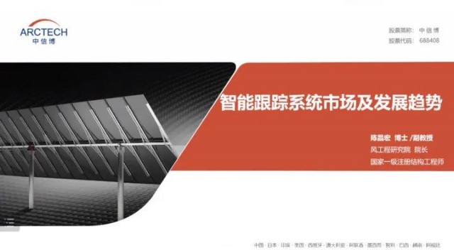 江蘇中信博新能源科技股份有限公司中信博風(fēng)工程研究院院長陳昌宏博士作智能跟蹤系統(tǒng)市場現(xiàn)狀與發(fā)展趨勢報告。陳院長從全球跟蹤支架市場格局與跟蹤支架技術(shù)發(fā)展趨勢兩個方面進(jìn)行了詳細(xì)的介紹。