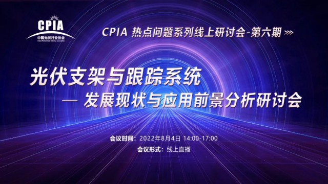 2022年8月4日下午,由中國光伏行業(yè)協(xié)會主辦的CPIA熱點問題系列線上研討會第六期——光伏支架與跟蹤系統(tǒng)發(fā)展現(xiàn)狀與應(yīng)用前景分析研討會通過網(wǎng)絡(luò)直播形式順利召開。本次會議邀請行業(yè)專家、光伏企業(yè)代表就光伏支架應(yīng)用場景、運(yùn)行方式的與成本經(jīng)濟(jì)性、智能跟蹤系統(tǒng)發(fā)展現(xiàn)狀、系統(tǒng)設(shè)計開發(fā)關(guān)鍵技術(shù)等方面內(nèi)容進(jìn)行了詳細(xì)分析。千余名業(yè)內(nèi)人士觀看了此次會議直播,氣氛熱烈。會議由中國光伏行業(yè)協(xié)會宣傳與對外聯(lián)絡(luò)部主任戴思源主持。