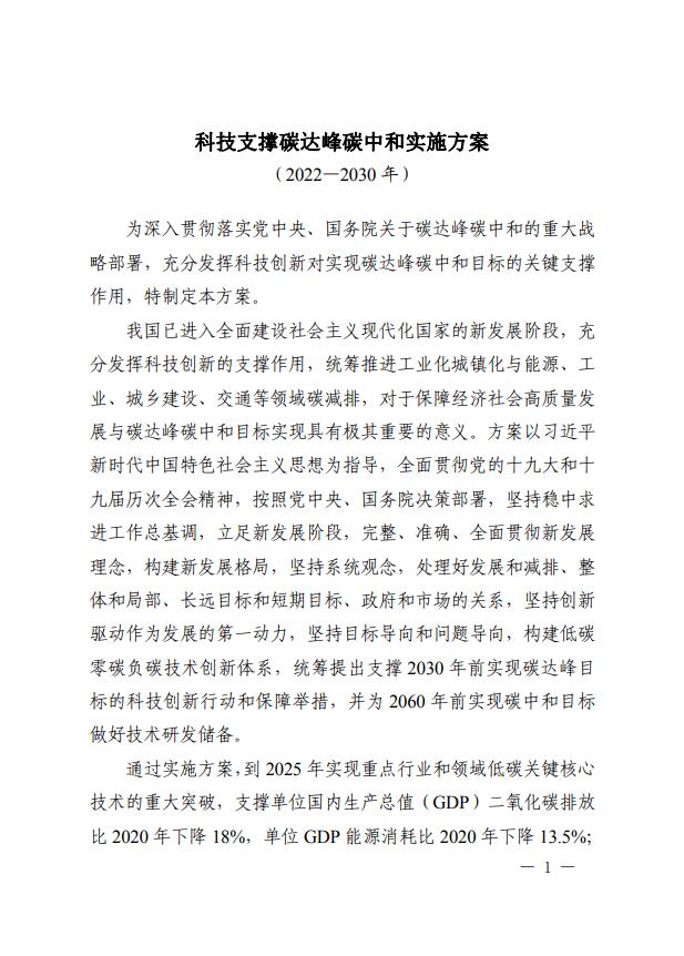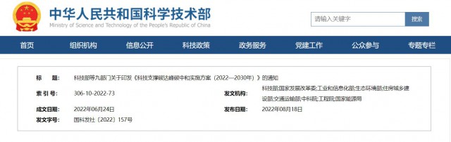 8月18日,科技部、國(guó)家發(fā)改委、工信部、生態(tài)環(huán)境部、住建部、交通部、中科院、工程院、國(guó)家能源局等九部門聯(lián)合印發(fā)《科技支撐碳達(dá)峰碳中和實(shí)施方案(2022—2030年)》。