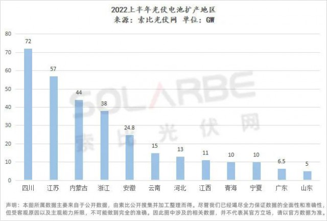 據(jù)索比光伏網(wǎng)統(tǒng)計(jì),上半年電池組件擴(kuò)產(chǎn)合計(jì)超650GW,其中電池?cái)U(kuò)產(chǎn)規(guī)模292.5GW,組件擴(kuò)產(chǎn)規(guī)模360.5GW,均大幅超出終端市場(chǎng)需求。隆基(66GW)、晶科(52GW)、晶澳(36GW)、東方希望(35GW)、東方日升(30GW)等企業(yè)領(lǐng)銜擴(kuò)產(chǎn)。從擴(kuò)產(chǎn)地區(qū)來(lái)看,電池?cái)U(kuò)產(chǎn)主要集中在四川、江蘇、內(nèi)蒙古、浙江、安徽等地,而組件擴(kuò)產(chǎn)主要集中在安徽、浙江、甘肅、內(nèi)蒙古、江西等地。