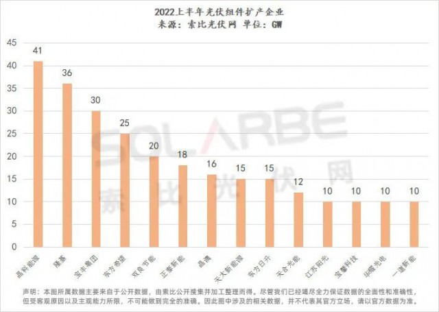 此外,還有正泰新能20GW、晶澳16GW、天大新能源15GW、東方日升15GW、天合光能12GW、江蘇陽(yáng)光、寶馨科技、華耀光電 、一道新能各10GW。