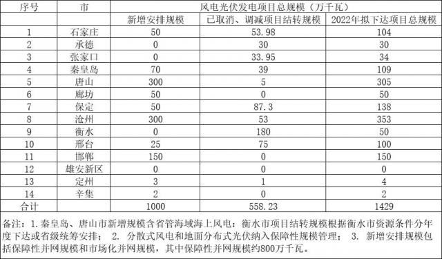 9月1日,河北省發(fā)改委發(fā)布了《關(guān)于征求風(fēng)電光伏項(xiàng)目開發(fā)建設(shè)意見建議的函》,并公示了 2022年度風(fēng)電、光伏開發(fā)建設(shè)規(guī)模匯總表。
