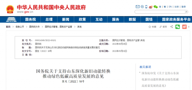 國(guó)務(wù)院關(guān)于支持山東深化新舊動(dòng)能轉(zhuǎn)換推動(dòng)綠色低碳高質(zhì)量發(fā)展的意見