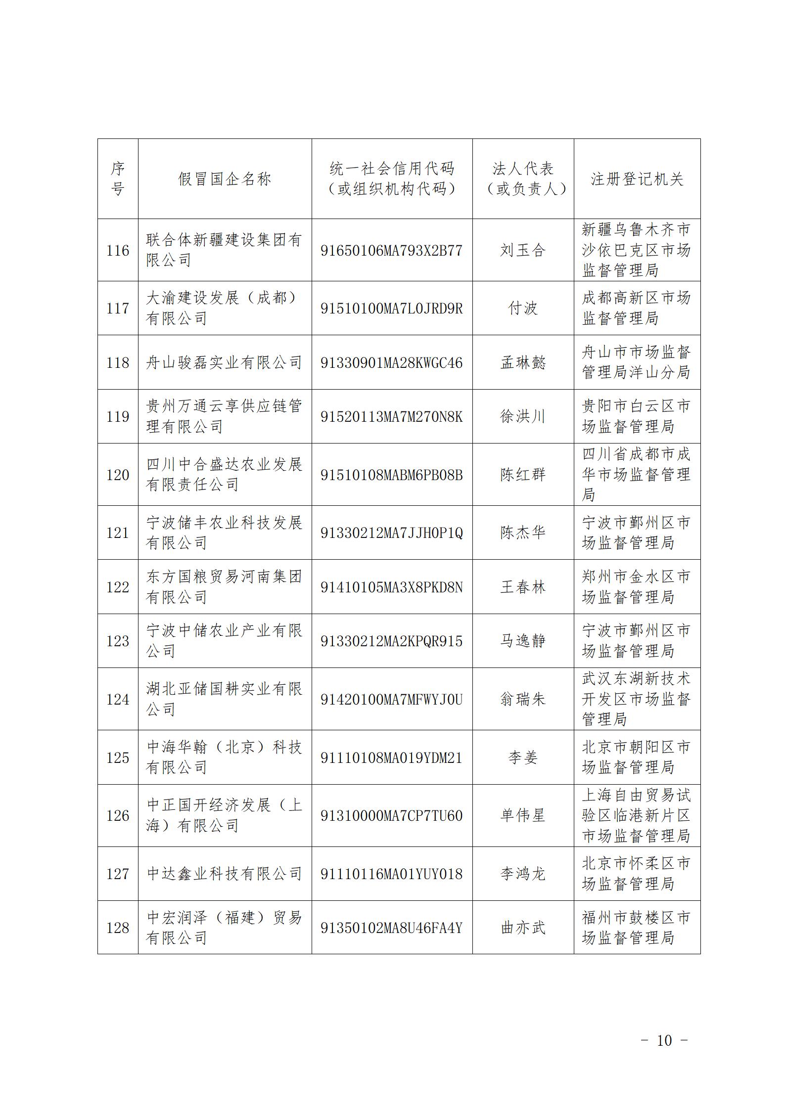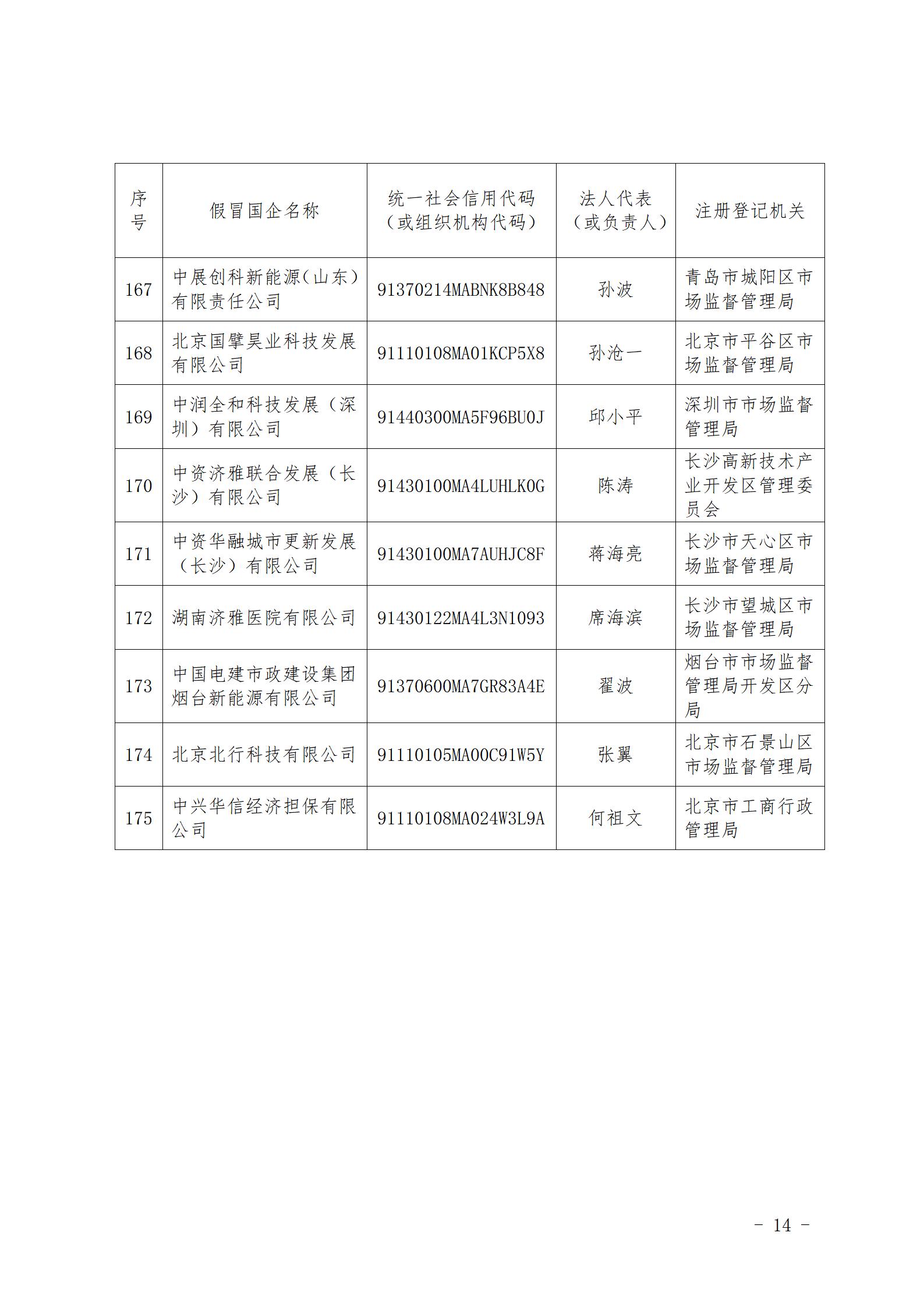 此次發(fā)布的第二批假冒中央企業(yè)名單共有175家企業(yè),包括中廣通國際控股有限公司、中氯集團(tuán)有限公司、中孚糧油產(chǎn)業(yè)集團(tuán)有限公司、中興華信經(jīng)濟(jì)擔(dān)保有限公司等。