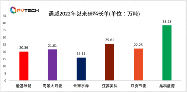 2022年通威硅料長單不完全統(tǒng)計(jì),PV Tech
