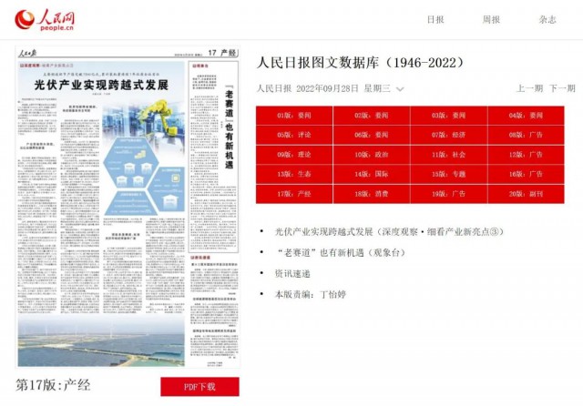 9月28日,《人民日?qǐng)?bào)》發(fā)表題為《光伏產(chǎn)業(yè)實(shí)現(xiàn)跨越式發(fā)展》的文章。該文通過(guò)對(duì)地方政府、相關(guān)企業(yè)、行業(yè)專家、當(dāng)?shù)鼐用裼脩舻牟稍L,指出我國(guó)光伏產(chǎn)業(yè)鏈國(guó)際競(jìng)爭(zhēng)優(yōu)勢(shì)凸顯,呈現(xiàn)分布式與集中式發(fā)展并舉、國(guó)際國(guó)內(nèi)市場(chǎng)快速擴(kuò)張、技術(shù)創(chuàng)新推動(dòng)光伏浮點(diǎn)成本下降等特點(diǎn)。“雙碳”目標(biāo)背景下,光伏產(chǎn)業(yè)在迎來(lái)發(fā)展機(jī)遇的同時(shí),也面臨著諸如產(chǎn)業(yè)供應(yīng)鏈價(jià)格高位運(yùn)行、部分國(guó)家設(shè)立綠色貿(mào)易壁壘等帶來(lái)的挑戰(zhàn)。