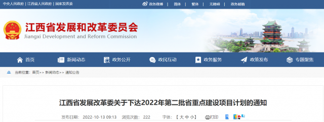 10月13日,江西省發(fā)展改革委關(guān)于下達2022年第二批省重點建設(shè)項目計劃的通知,重點項目合計115項。