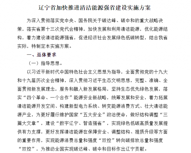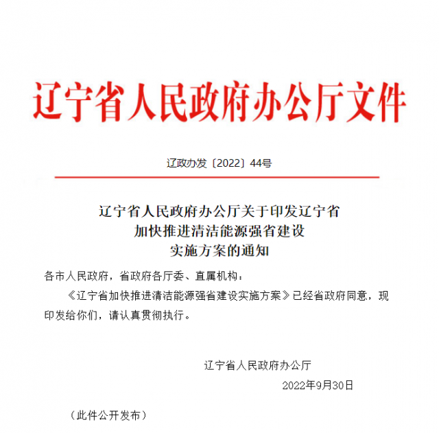 近日,遼寧省人民政府發(fā)布《遼寧省加快推進(jìn)清潔能源強(qiáng)省建設(shè)實施方案》。