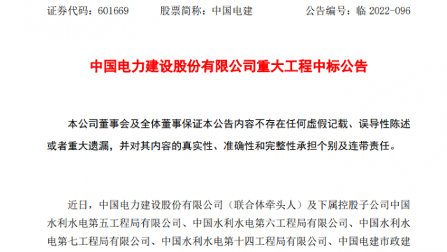 另一家央企旗下上市公司中國電建(601669)也斬獲大單。據(jù)同日晚間公告,公司(聯(lián)合體牽頭人)及下屬控股子公司組成聯(lián)合體,中標了市域(郊)鐵路成都至眉山線工程施工總承包項目,中標金額約為106.04億元。項目工期為1554日歷天。