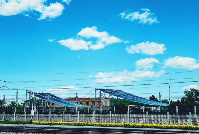 鐵科院咨詢公司開(kāi)展的“國(guó)家鐵道試驗(yàn)中心鐵路沿線分布式光伏發(fā)電及能源管理試驗(yàn)”先行示范段項(xiàng)目,是我國(guó)鐵路系統(tǒng)首個(gè)柔性支架光伏示范項(xiàng)目,日均可為國(guó)家鐵道試驗(yàn)中心提供1000度清潔電力。