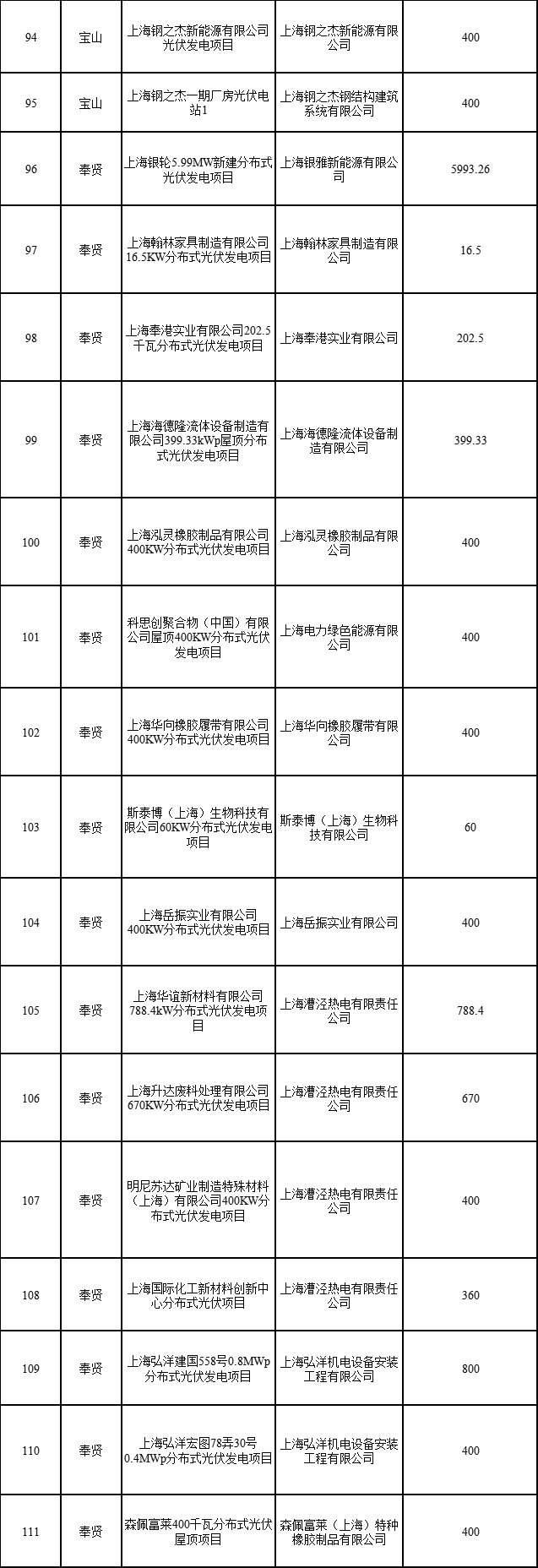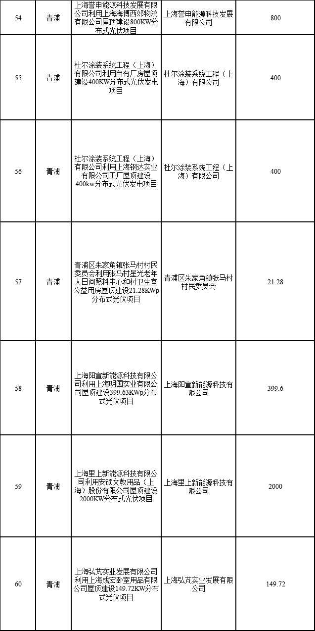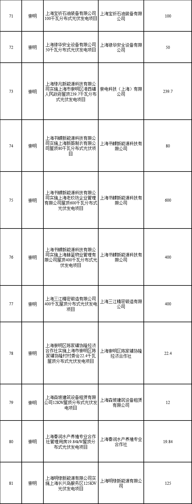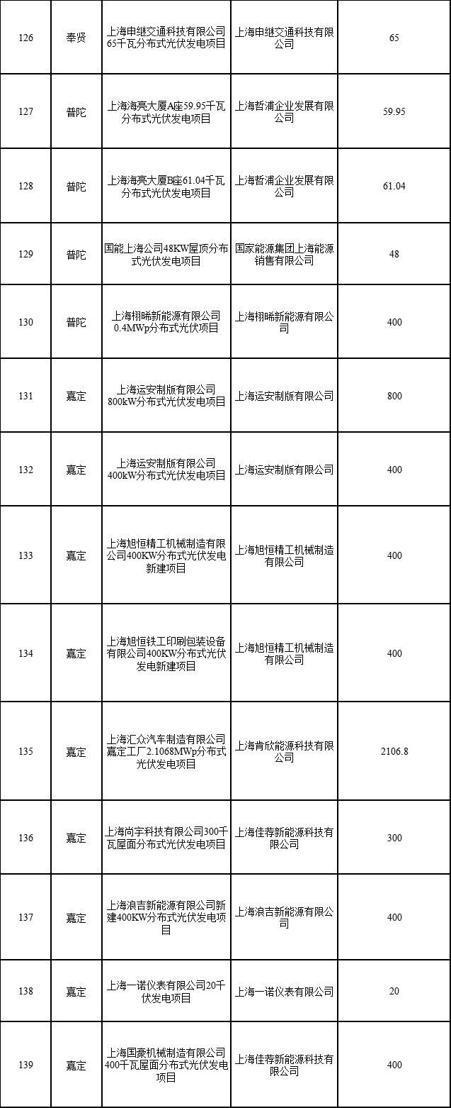 居民光伏8個。經青浦區(qū)發(fā)展改革委申請核實,(1)“上海市青浦區(qū)趙巷鎮(zhèn)業(yè)煌路168弄173號(2017年第二批)”用戶名從“孫仟花”變更為“侯笑宇”;(2)“上海市青浦區(qū)趙巷鎮(zhèn)業(yè)前路1688弄446號(2019年第一批)”用戶名從“宋厚波”變更為“王花”;(3)“上海市青浦區(qū)徐涇鎮(zhèn)滬青平公路1638弄156號(2018年第一批)”用戶名從“劉喜芝”變更為“夏永玲”;(4)“上海市青浦區(qū)朱家角鎮(zhèn)浦祥路581弄1801號(2019年第一批)”用戶名從“沈瓊”變更為“金紀寧”;(5)“上海市青浦區(qū)青浦鎮(zhèn)新園路509弄32號301室(2015年第一批)”用戶名從“趙林濤”變更為“周冠卿”;(6)“上海市青浦區(qū)趙巷鎮(zhèn)滬青平公路2558弄123號(2021年第一批)”用戶名從“田樹濤”變更為“TIANSHUTAO”;(7)“上海市青浦區(qū)趙巷鎮(zhèn)置發(fā)路68弄52號(2017年第三批)”用戶名從“方婷”變更為“陳芳”。經奉賢區(qū)發(fā)展改革委申請核實,(8)經奉賢區(qū)發(fā)展改革委申請核實,“上海市奉賢區(qū)海灣旅游區(qū)海馬路5888弄609號”用戶名從“蔣惠祥”變更為“印桂花”。