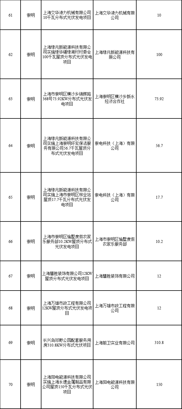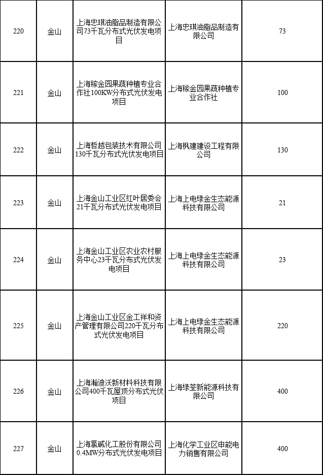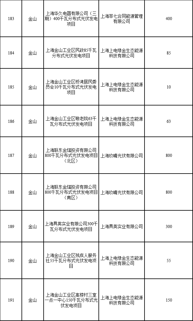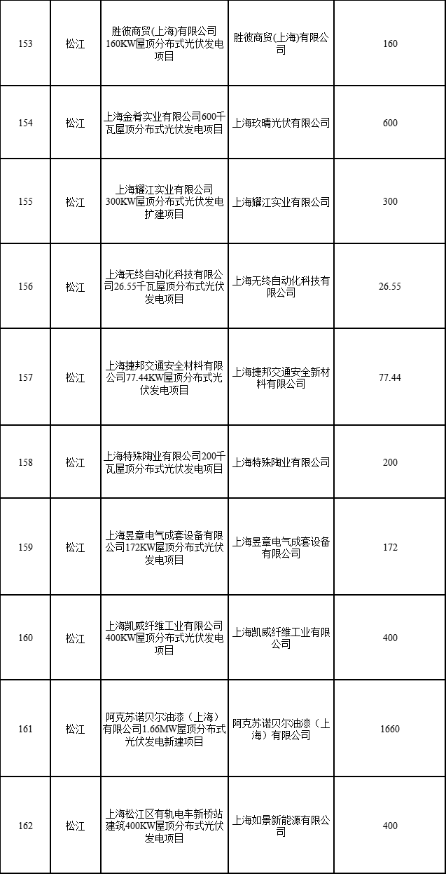 居民光伏8個。經青浦區(qū)發(fā)展改革委申請核實,(1)“上海市青浦區(qū)趙巷鎮(zhèn)業(yè)煌路168弄173號(2017年第二批)”用戶名從“孫仟花”變更為“侯笑宇”;(2)“上海市青浦區(qū)趙巷鎮(zhèn)業(yè)前路1688弄446號(2019年第一批)”用戶名從“宋厚波”變更為“王花”;(3)“上海市青浦區(qū)徐涇鎮(zhèn)滬青平公路1638弄156號(2018年第一批)”用戶名從“劉喜芝”變更為“夏永玲”;(4)“上海市青浦區(qū)朱家角鎮(zhèn)浦祥路581弄1801號(2019年第一批)”用戶名從“沈瓊”變更為“金紀寧”;(5)“上海市青浦區(qū)青浦鎮(zhèn)新園路509弄32號301室(2015年第一批)”用戶名從“趙林濤”變更為“周冠卿”;(6)“上海市青浦區(qū)趙巷鎮(zhèn)滬青平公路2558弄123號(2021年第一批)”用戶名從“田樹濤”變更為“TIANSHUTAO”;(7)“上海市青浦區(qū)趙巷鎮(zhèn)置發(fā)路68弄52號(2017年第三批)”用戶名從“方婷”變更為“陳芳”。經奉賢區(qū)發(fā)展改革委申請核實,(8)經奉賢區(qū)發(fā)展改革委申請核實,“上海市奉賢區(qū)海灣旅游區(qū)海馬路5888弄609號”用戶名從“蔣惠祥”變更為“印桂花”。