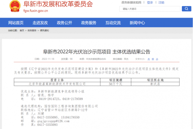 阜新市2022年光伏治沙示范項目 主體優(yōu)選結(jié)果公告