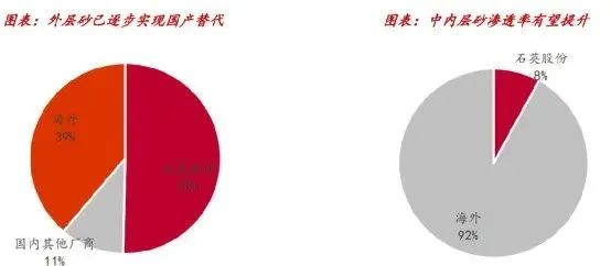 光伏石英坩堝產(chǎn)品端:光伏行業(yè)由于產(chǎn)品精密度程度高、技術(shù)發(fā)展快,對(duì)石英坩堝的純度、精度要求日益嚴(yán)格。我國(guó)的石英制品行業(yè)起步較晚,只有少數(shù)規(guī)模化企業(yè)的石英坩堝技術(shù)方面達(dá)到先進(jìn)水平。技術(shù)上來看,近幾年我國(guó)石英制品行業(yè)的技術(shù)進(jìn)步較為明顯,尤其是石英坩堝技術(shù)水平與國(guó)外企業(yè)產(chǎn)品的差距逐步縮小,在坩堝尺寸、純度、拉晶時(shí)間和拉晶次數(shù)等方面均取得顯著進(jìn)步。此外,國(guó)內(nèi)石英坩堝具有一定的成本優(yōu)勢(shì),在質(zhì)量和性能等方面與進(jìn)口石英坩堝的差距正逐漸縮小。這些都為國(guó)產(chǎn)化創(chuàng)造了條件。從細(xì)分部件來看,外層砂已基本實(shí)現(xiàn)國(guó)產(chǎn)替代,中內(nèi)層砂產(chǎn)品和客戶認(rèn)可度逐步提升。目前石英股份的高純石英砂仍以外層砂為主,我們預(yù)計(jì)石英股份在中內(nèi)層砂質(zhì)量以及客戶認(rèn)可度上均有提升,并有望逐步提高中內(nèi)層砂的滲透率。我們預(yù)計(jì)21年石英股份外層砂份額約50%,中內(nèi)層砂份額約8%。