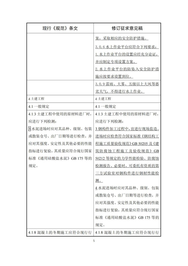 根據(jù)局部修訂條文對照表,新增水上光伏測繪、施工以及安全等一系列要求。例如,水上光伏發(fā)電站水下測繪工作應(yīng)完成,水下障礙物應(yīng)全部清理完畢。如施工場地有航道交叉,應(yīng)采取相應(yīng)安全保障措施。對于水面作業(yè)、作業(yè)面高度在2m及以上、作業(yè)面坡度大于30゜等特殊作業(yè)環(huán)境的項目,應(yīng)編制專項施工方案,采取相應(yīng)的安全防護(hù)措施。水上作業(yè)平臺應(yīng)符合下列要求:1.水上作業(yè)平臺的設(shè)置應(yīng)經(jīng)充分論證,并應(yīng)制定專項設(shè)置方案。2.水上作業(yè)平臺的防墜入安全防護(hù)措施應(yīng)按要求設(shè)置到位。