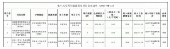此次納入2023年第二批可再生能源發(fā)電補(bǔ)貼清單的項(xiàng)目共21個(gè),核準(zhǔn)/備案容量1284兆瓦,其中:生物質(zhì)發(fā)電項(xiàng)目3個(gè),核準(zhǔn)/備案容量104兆瓦。