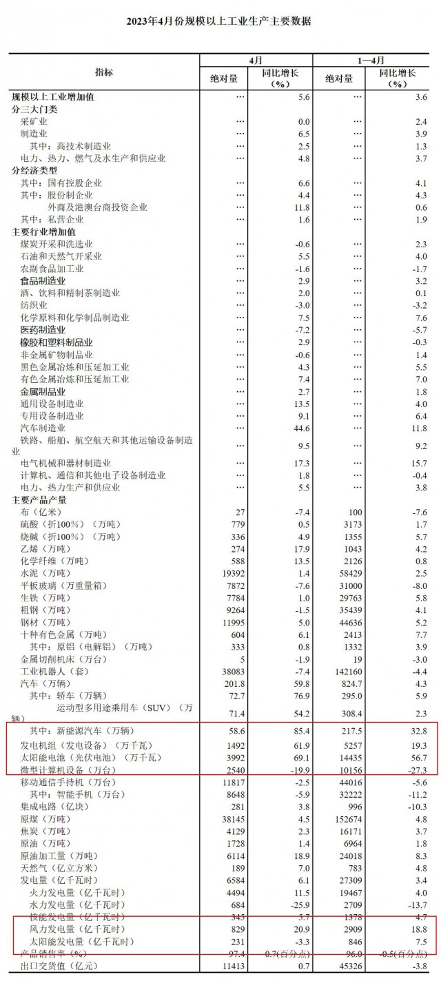 5月16日,國家統(tǒng)計局發(fā)布了2023年4月份規(guī)模以上工業(yè)生產(chǎn)主要數(shù)據(jù)。