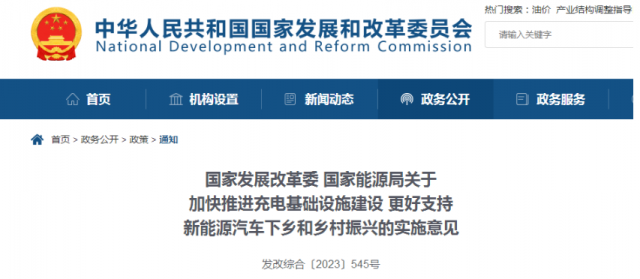 國家發(fā)展改革委 國家能源局關(guān)于加快推進(jìn)充電基礎(chǔ)設(shè)施建設(shè) 更好支持新能源汽車下鄉(xiāng)和鄉(xiāng)村振興的實施意見